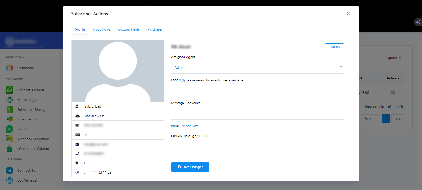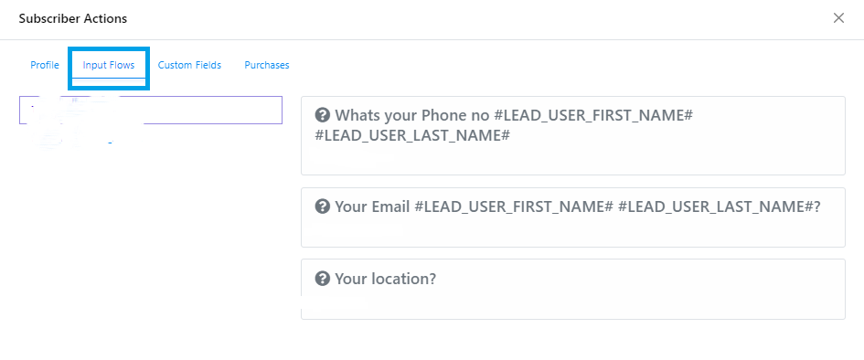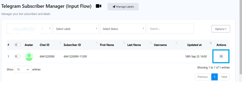 Gestión de acciones de suscriptores: Al hacer clic en el botón de informe, accederá al administrador de suscriptores del flujo de entrada. Podrá ver los informes de un suscriptor específico.