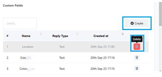 - También puede utilizar el botón «Eliminar» para eliminar campos personalizados existentes.