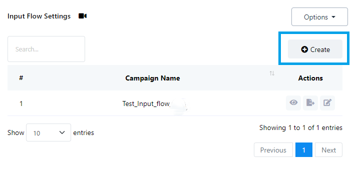 - Haga clic en el botón "Crear" para iniciar la creación de un nuevo flujo de entrada de usuario.