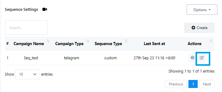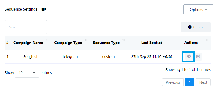 Para comprobar el informe de secuencia, vaya a esa secuencia particular de la lista de secuencias y luego haga clic en el botón de informe debajo de acciones.
