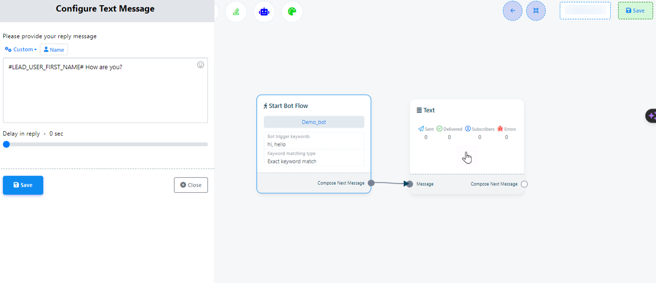 A continuación se muestran los pasos para configurar el flujo del bot de inicio: