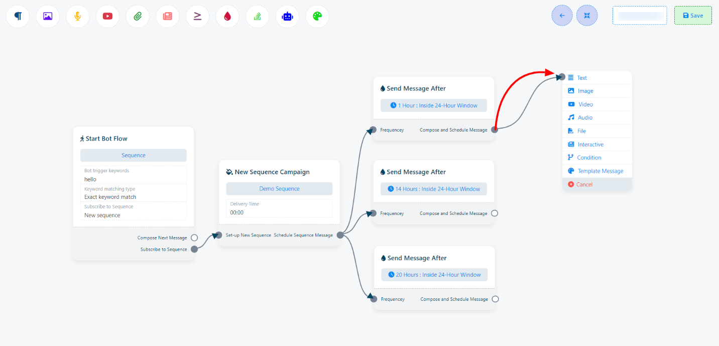 En términos prácticos, permite configurar una serie de mensajes que se envían a intervalos de tiempo precisos, garantizando que la comunicación con los usuarios siga siendo oportuna y contextualmente relevante.