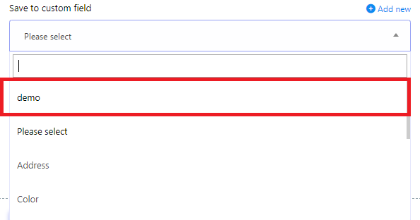 - Usar nuevo campo personalizado agregado: después de crear un nuevo campo personalizado, puede elegirlo desde el menú emergente "Guardar en campo personalizado".