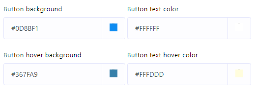 - Especifique colores para el fondo del botón del widget de chat, el color del texto del botón, el fondo al pasar el mouse sobre el botón y el color del texto al pasar el mouse sobre el botón.