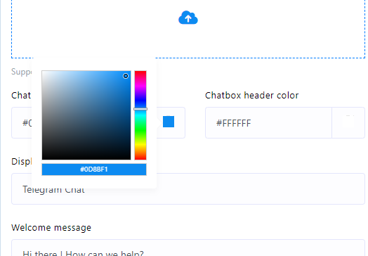 - Seleccione un color de la paleta de colores o ingrese un código de color hexadecimal para el fondo del encabezado del widget de chat.