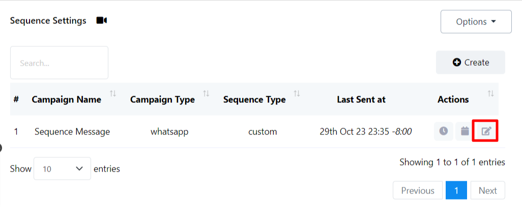 Crear una nueva campaña de mensajes de secuencia: También hay una opción para crear una nueva secuencia desde aquí. Para crear una nueva secuencia, simplemente haga clic en el botón "Crear".
