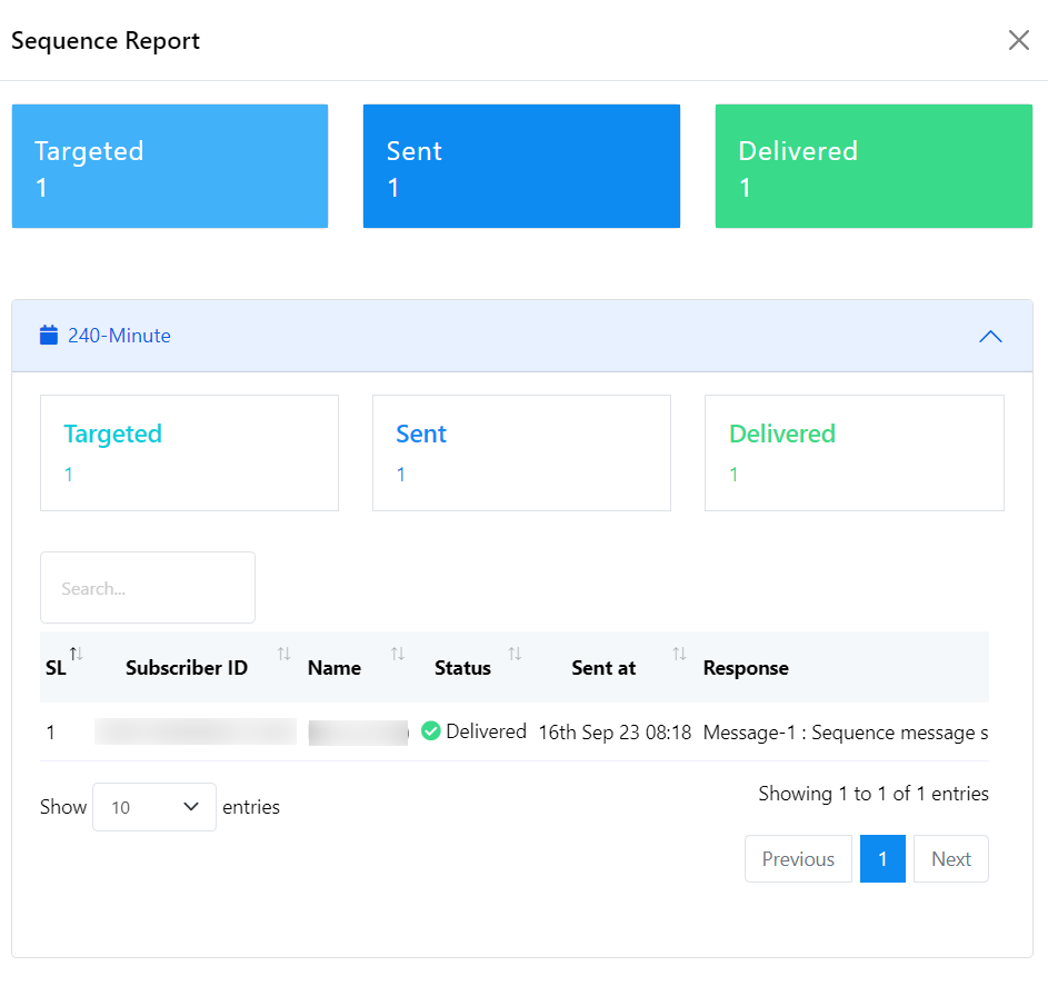 Informes de acceso: para ver los informes de las campañas de mensajes de secuencia, haga clic en las opciones de informes por hora o por día en la sección "Acciones" de la lista de secuencias.