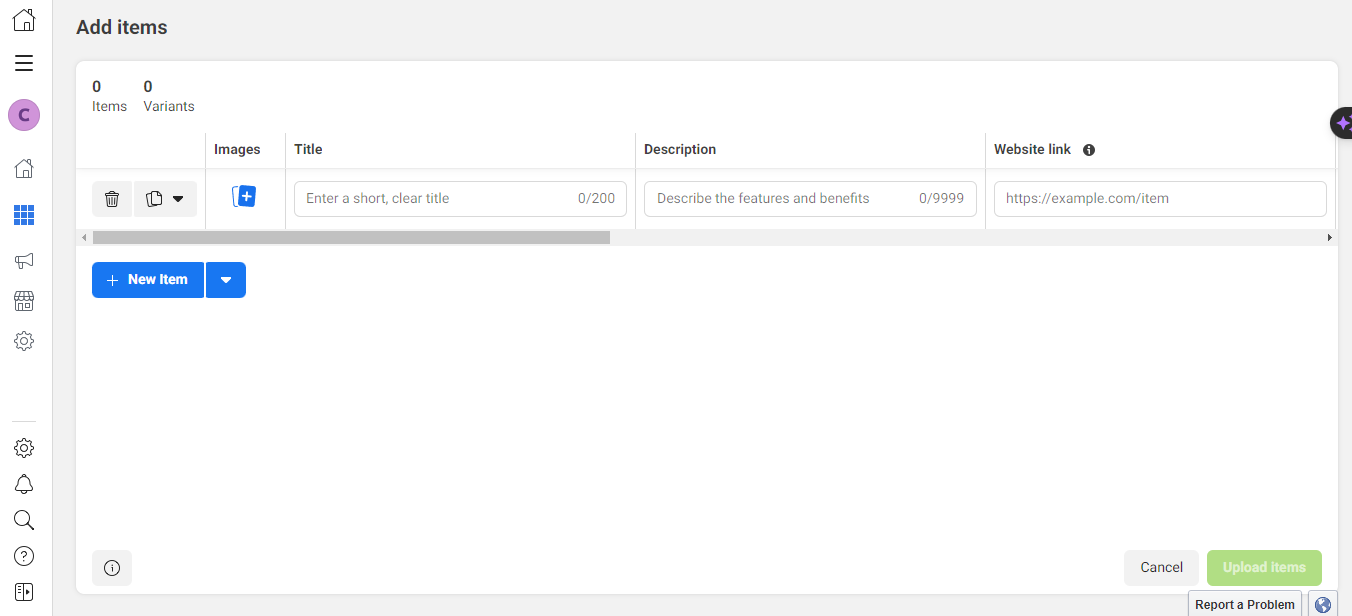- Seleccione el método de carga (Subir información del producto o Conectar una plataforma asociada). Por ahora, seleccione Subir información del producto.