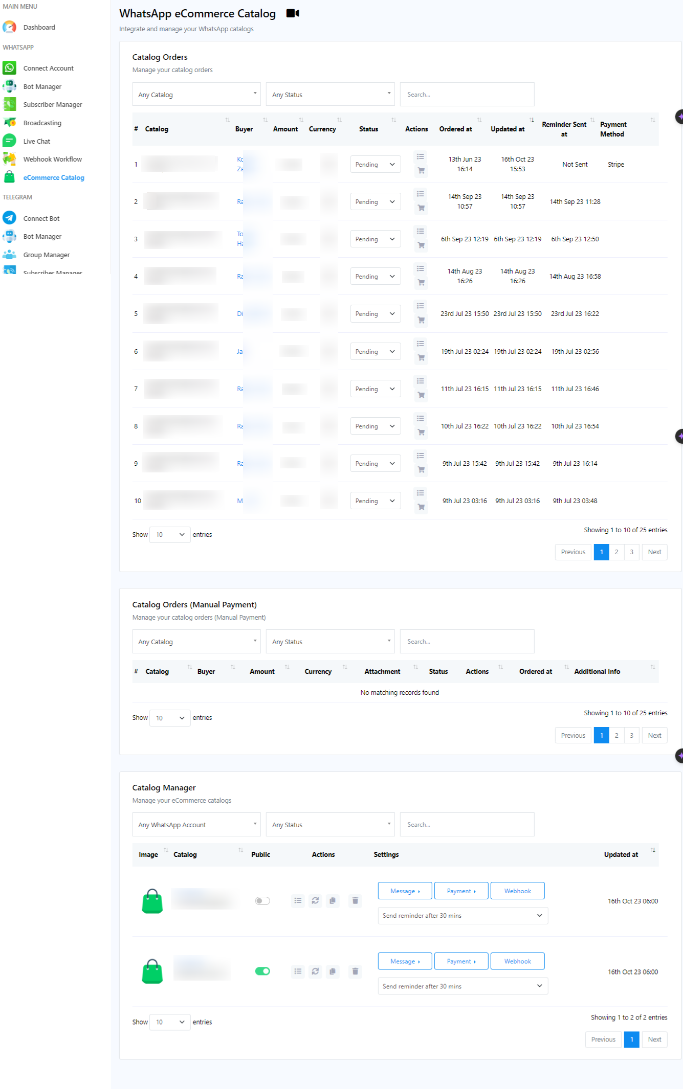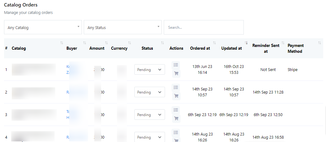 - Puede ver los pedidos del catálogo y cambiar el estado de un pedido desde "Pedido del catálogo" en la parte superior de la página.