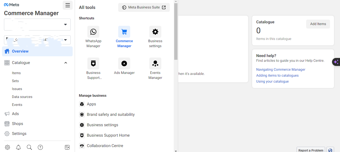 - En Herramientas de cuenta, haga clic en "Catálogo".