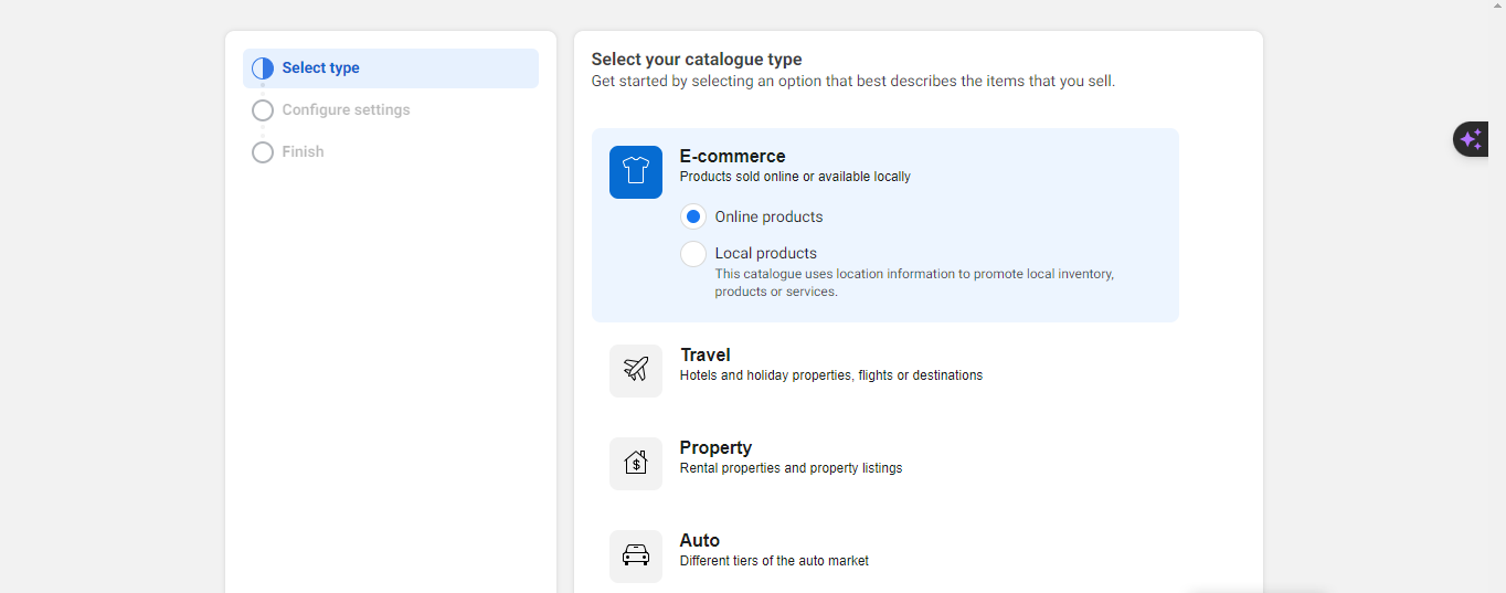 - Seleccione “En línea” o “Productos locales” según su tipo de negocio, luego haga clic en “Siguiente”.