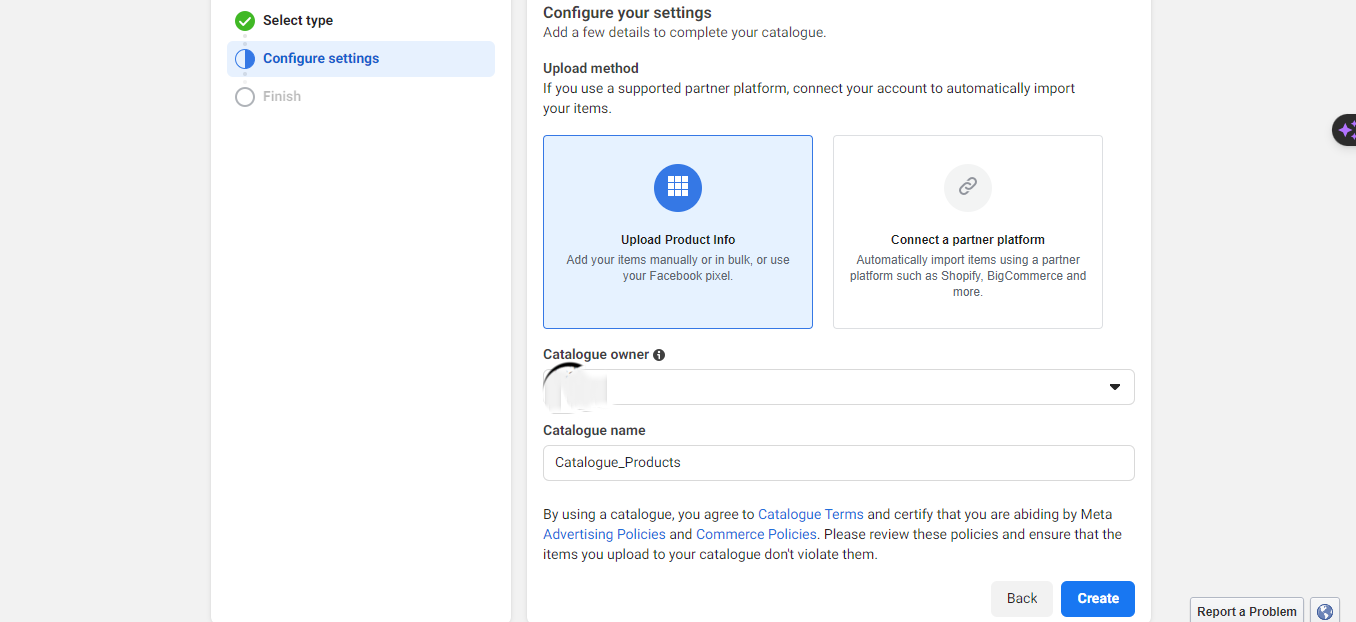 - Dale un nombre al catálogo y haz clic en "Crear".